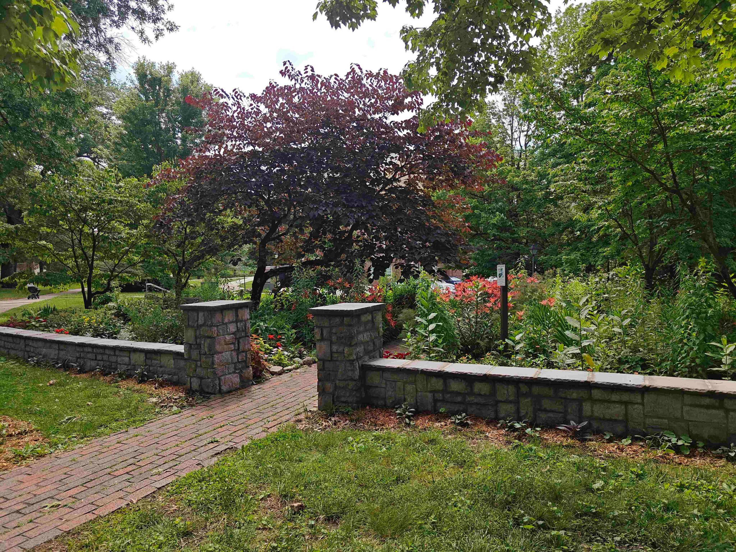 The Laurie Roelofs Pollinator Garden sits within the old foundation for Rustic Cottage, which was built in 1901 and served many purposes until it was demolished in 2008 for the construction of Fee Glade. The area was turned into a garden. When Laurie Roelofs became First Lady of the college in 2012, she drew on her love of teaching, the environment, and monarch butterflies to develop monarch waystations around campus. In 2014, the garden became officially recognized as a registered monarch waystation and it has provided numerous learning opportunities to for students to learn about monarchs and their lifecycle. You can read more about Mrs. Roelofs work here.